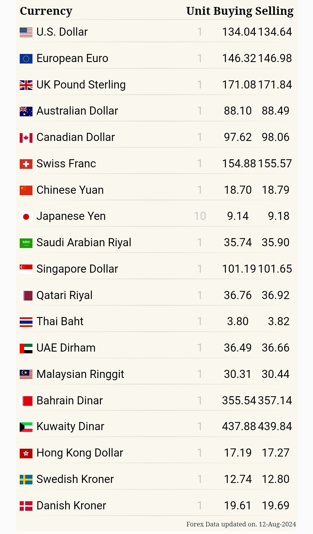 share 349 काठमाडौं । सोमबारका लागि नेपाल राष्ट्र बैंकले विदेशी मुद्राको विनिमय दर सार्वजनिक गरेको छ । आज अमेरिकी डलर एकको खरिद दर १३४ रुपैयाँ ०४ पैसा र बिक्री दर १३४ रुपैयाँ ६४ पैसा तोकिएको छ । युरो एकको खरिद दर १४६ रुपैयाँ ३२ पैसा र बिक्री दर १४६ रुपैयाँ ९८ पैसा तोकिएको छ । बेलायती पाउण्ड एकको खरिद दर १७१ रुपैयाँ ०८ पैसा र बिक्री दर १७१ रुपैयाँ ८४ पैसा तोकिएको छ । त्यस्तै, कतारी रियालको मूल्य एकको खरिद दर ३६ रुपैयाँ ७६ पैसा र बिक्री दर ३६ रुपैयाँ ९२ पैसा तोकिएको राष्ट्र बैंकले जनाएको छ । यस्तो छ आज विदेशी मुद्राको विनिमय दर : पोस्टको नेभिगेसन कति छ आज विदेशी मुद्राको विनिमय दर ? यस्तो छ आज विदेशी मुद्राको विनिमय दर