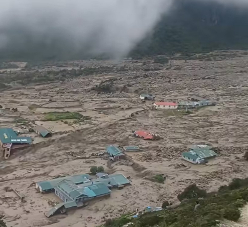 त्यहाँस्थित थामे खोलामा शुक्रबार लेदोसहितको बाढी एक्कासी उर्लेर आउँदा वरपरका घर, विद्यालय र स्वास्थ्यचौकीमा क्षति पुर्याएको छ। बाढीबाट निजी भवन, होटल, विद्यालय र स्वास्थ्यचौकीगरी २० घरमा क्षति पुगेको छ। रक्षामन्त्रीसहितको टोली प्रभावित क्षेत्रमा आज बिहान प्रस्थान गरेको नेपाली सेनाका प्रवक्ता गौरव केसीले जानकारी दिए। बाढीबाट प्रभावित ९३ जनालाई नजिकको सामुदायिक भवनमा तत्कालका लागि स्थानान्तरण गरिएको प्रमुख जिल्ला अधिकारी देवी पाण्डेले बताइन्। बाढीबाट क्षति भएसँगै नेपाली सेनासहितको सुरक्षा फौज र स्थानीय जनप्रतिनिधिको सहयोगमा त्यस क्षेत्रमा उद्धार र राहतको काम भइरहेको छ। बाढीले प्रभावित बस्तीभन्दा केही तल रहेको पक्की पुलमा क्षति पुर्याएको छ। प्रभावित स्थान थ्री पास जाने मार्गमा रहेको पर्यटकीय क्षेत्र हो। त्यस क्षेत्रमा चौँरीपालन र होटल व्यवसाय हुँदै आएको छ। राष्ट्रियसभा सङ्घीयता सबलीकरण तथा राष्ट्रिय सरोकार समितिका सभापति सोनाम गेल्जेन शेर्पाले प्रभावित क्षेत्र नाम्चेबाट करिब सात किलोमिटरको दूरीमा ‘थ्री पास’ मार्गमा रहको बस्ती भएको जानकारी दिए। उनले भने, ‘त्यो सगरमाथा आरोहण गर्ने बाटोभन्दा केही टाढाको दूरीमा छ। प्रभावित क्षेत्रको विद्युत् गृहमा क्षति पुगेकाले अहिले बिजुली नहुँदा दूरसञ्चार सेवा प्रवाहमा असर परेको छ।’